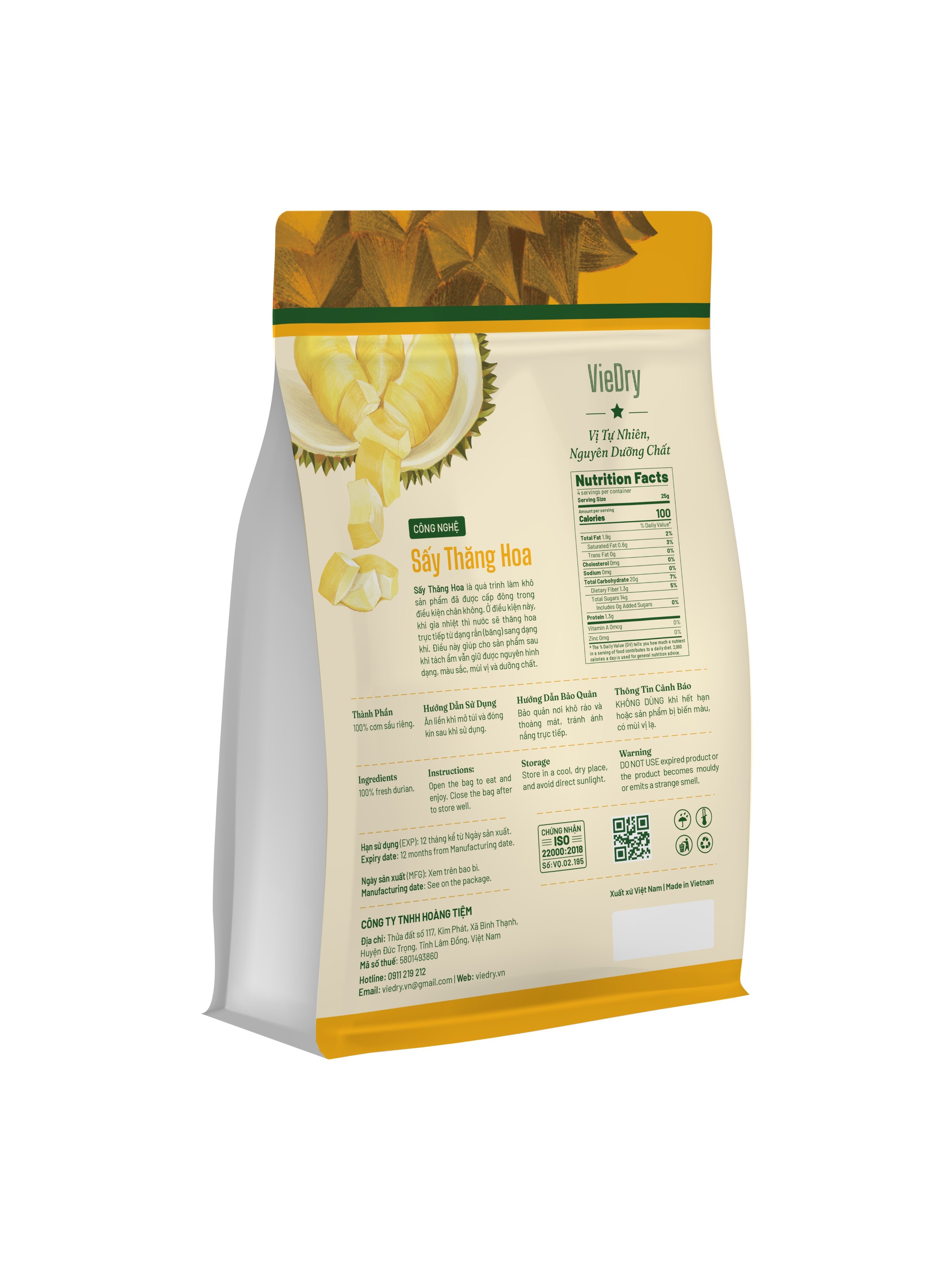 Thành phần: 100% cơm sầu riêng.